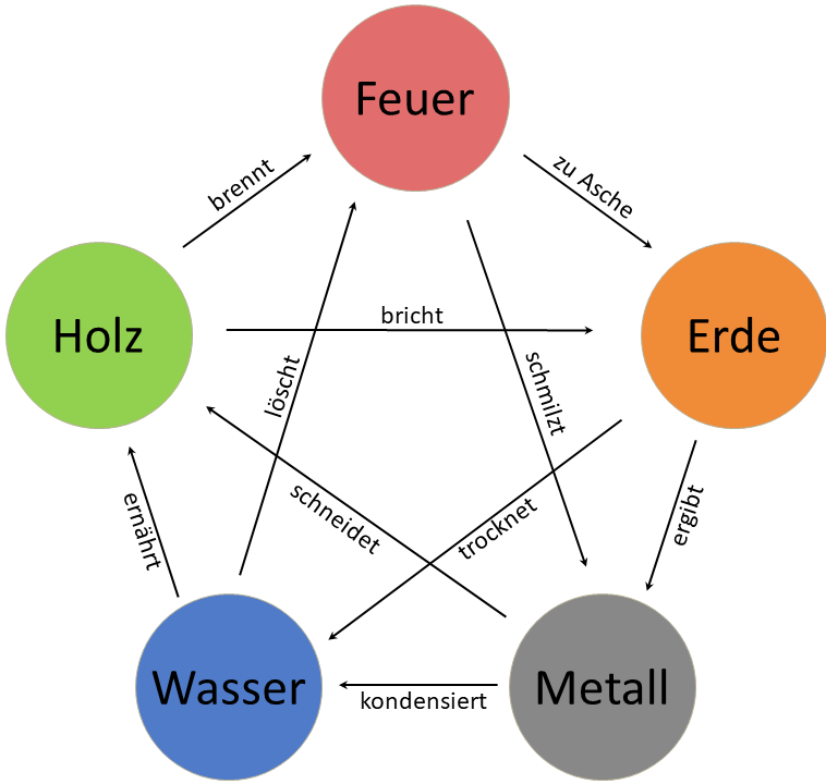 | Holz | Feuer | Erde | Metall | Wasser | |